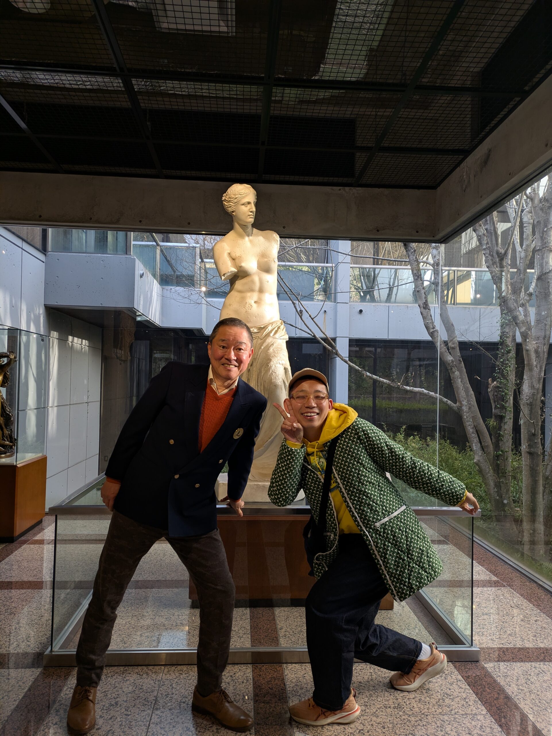 取材当日は、当館の彫刻作品を前に、井上さんならではの柔軟で鋭い視点から、美術を「楽しむ」「感じる」ことの大切さを改めて実感するひとときとなりました。